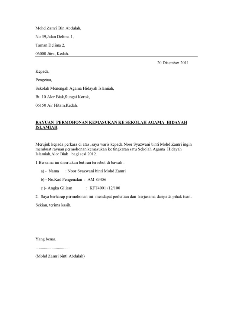 Contoh Surat Rayuan Sekolah Agama Kerja Koso Otosection